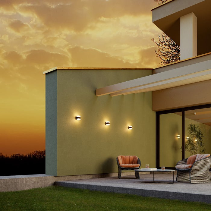 Aplica LED Tok, este un corp de iluminat exterior, modern si compact, conceput pentru a oferi iluminat functional si decorativ. Cu un design simplu si elegant, finisaj gri inchis mat si dispersoare de sticla transparenta, este potrivita pentru locuinte moderne sau proiecte de amenajare exterioara ce necesita un echilibru intre estetic si functionalitate.