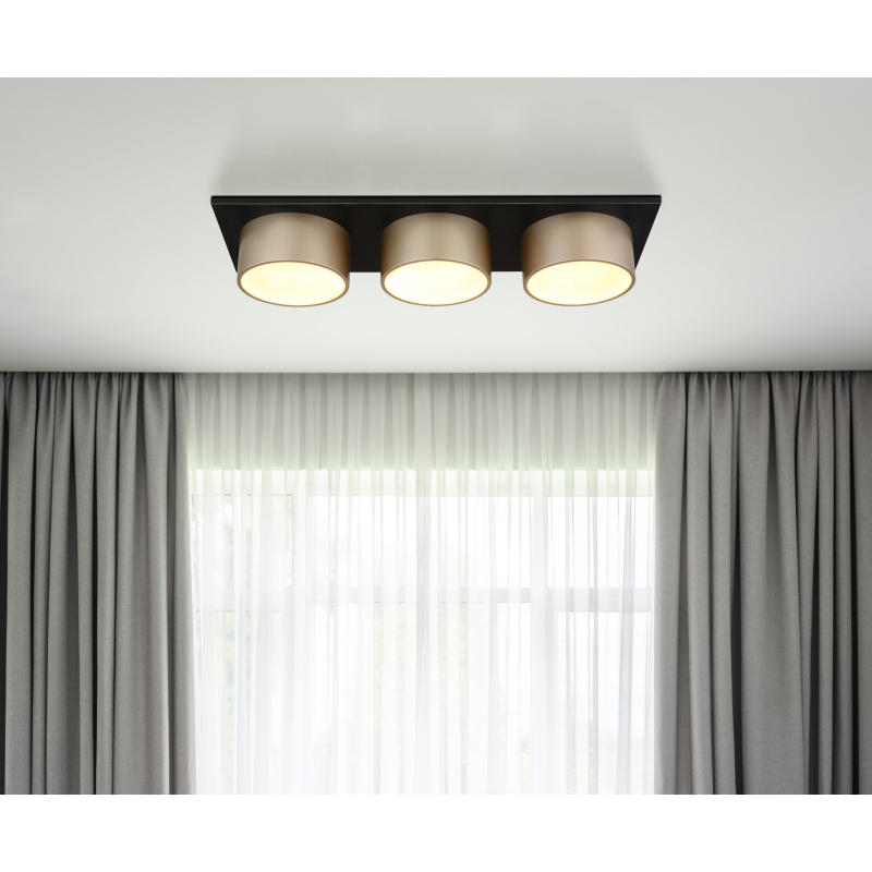 Plafoniera Led Raymond, ofera un design modern si versatil prin forma si culorile ei, negru mat/sampanie.