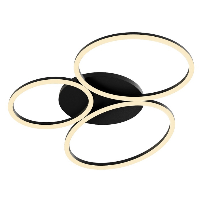 Plafoniera Led Ritmo 40W, cu design modern, realizata din aluminiu si metal vopsit negru mat, echipata cu dispersoare din silicon alb opal, care ofera lumina difuza si placuta.