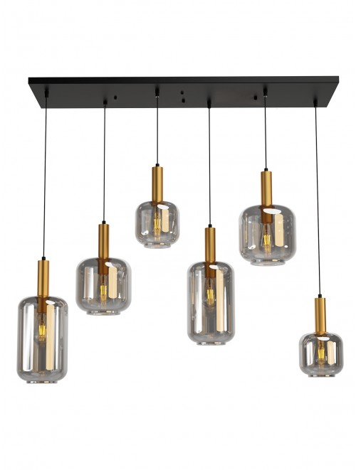 Suspensie Brina, negru/auriu/fumuriu, 6x23W E27, 01-3215