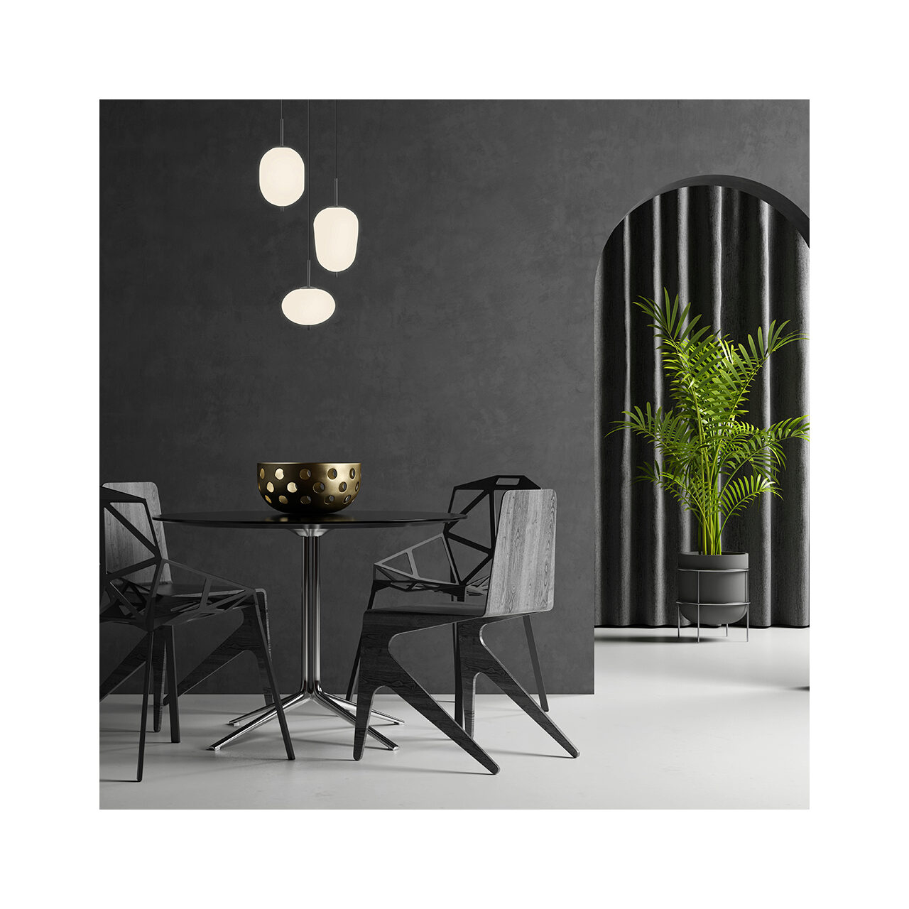Suspensie/Pendul, este un corp de iluminat decorativ si modern, cu un aspect sofisticat dat de sticla alba mat si structura metalica, ideala pentru toate spatiile.
