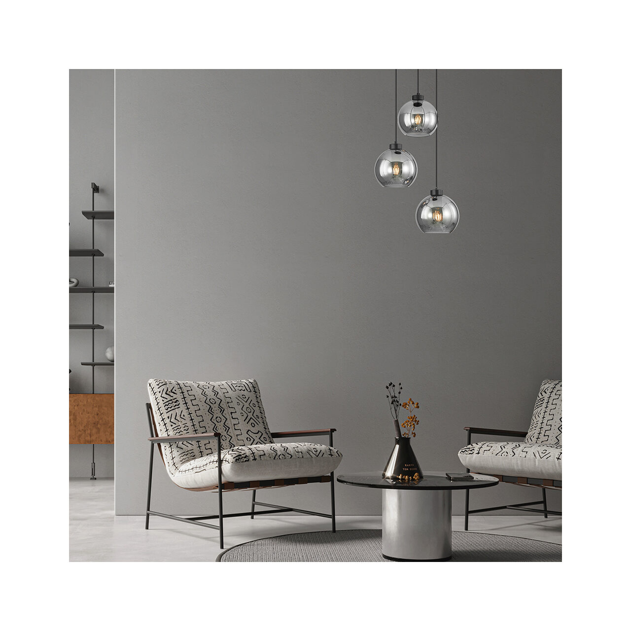 Suspensie/Pendul, este un corp de iluminat decorativ si modern, cu un aspect sofisticat dat de sticla fumurie si structura metalica, ideala pentru toate spatiile.